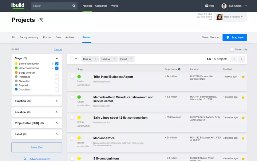 In iBuild database, you can learn the progress of construction projects online and contact the companies involved in them.