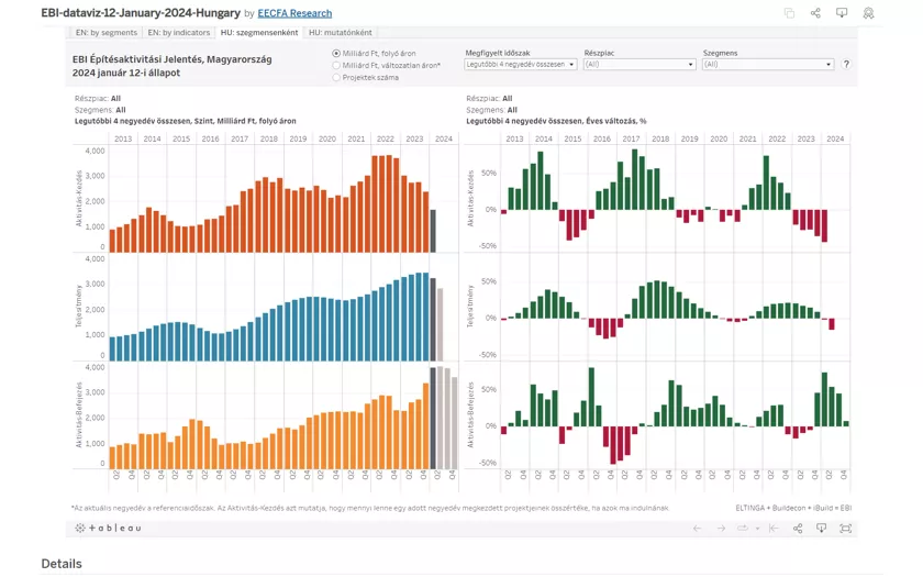 Az EBI Építésaktivitási Jelentés és Adatvizualizáció az építési projektek adatait aggregáló havi elemzés a magyarországi, illetve a romániai építési piac aktuális és rövid távon várható teljesítményéről.