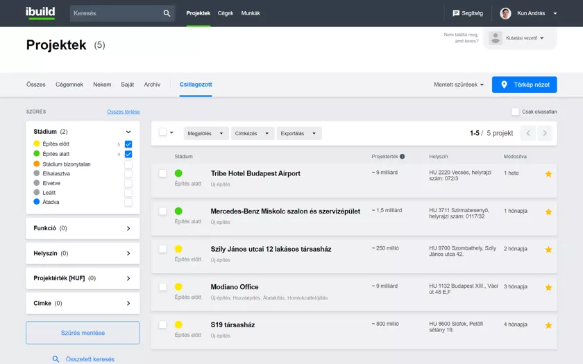 Az iBuild adatbázisban online tájékozódhat az építési projektek előrehaladásáról, és kapcsolatba léphet a projektekben részt vevő cégekkel.